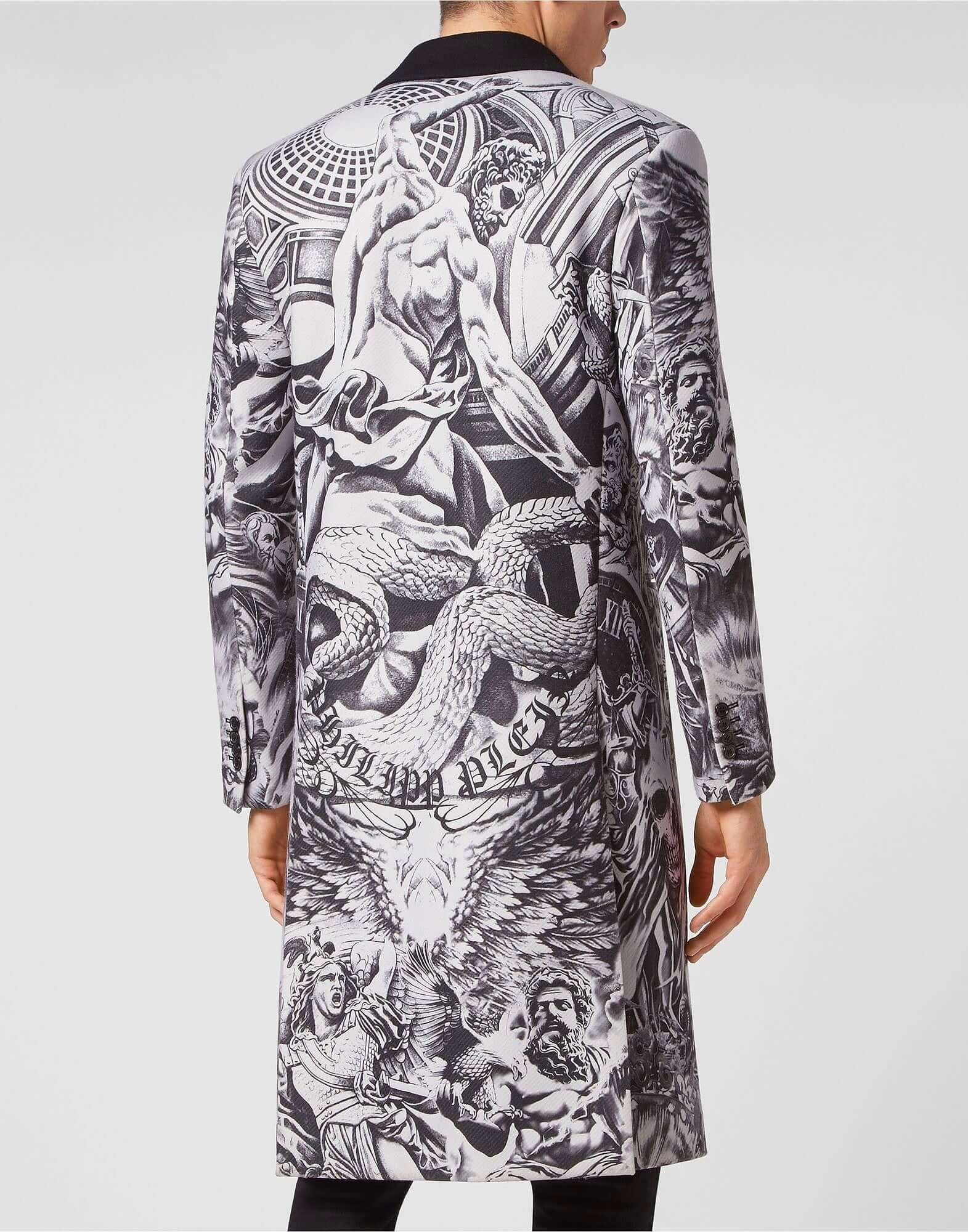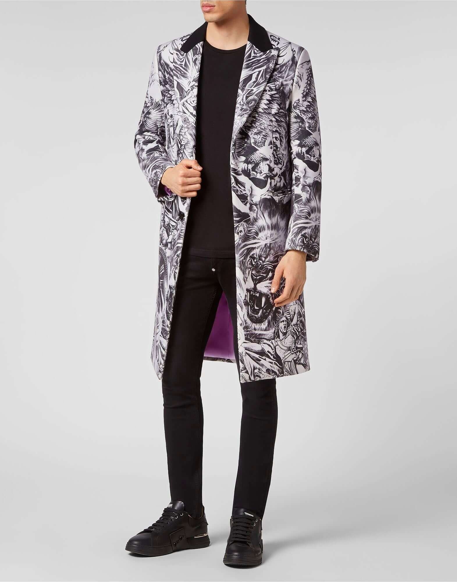 Originalità a 360°. Guarda questo cappotto di panno caratterizzato da un particolare molto Plein.