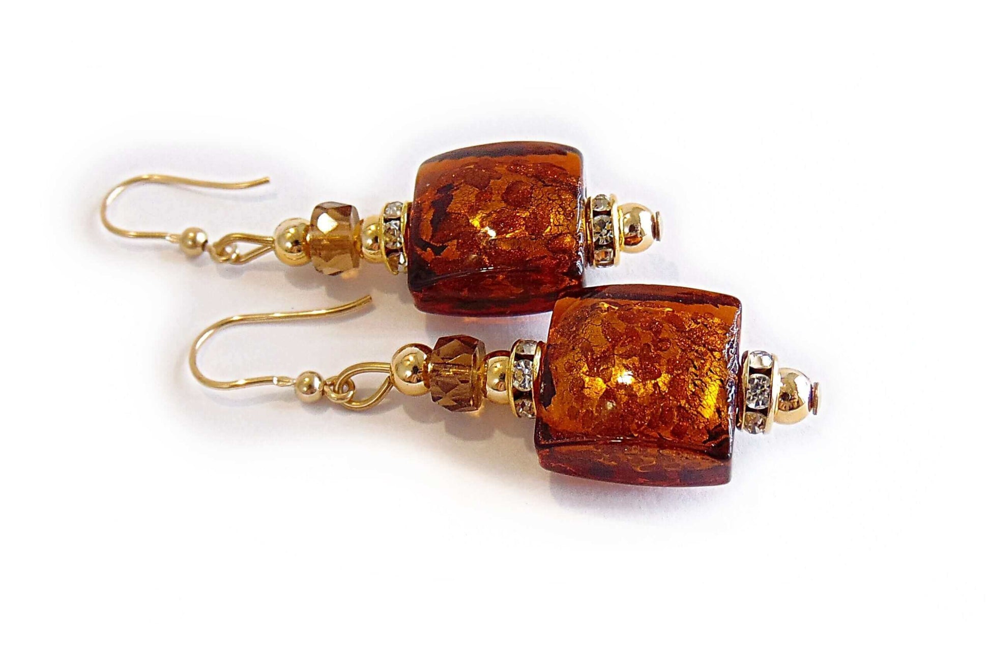 - Perle quadrate da 14mm in vetro di Murano con foglia in oro 24kt, fatte a mano: ogni perla è diversa dall'altra