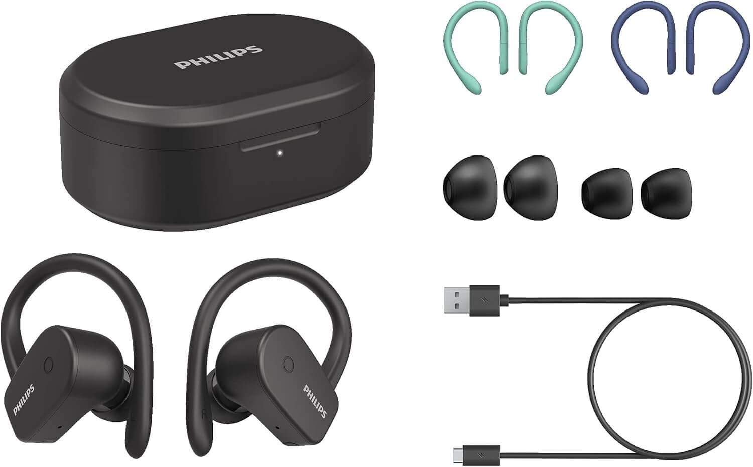 Philips A5205BK/00 Cuffie Bluetooth Sport Wireless In Ear (Modalità Mono, Microfono, Impermeabilità IPX7, Ricarica Rapida, Supporto per L'orecchio Rimovibile) Nero