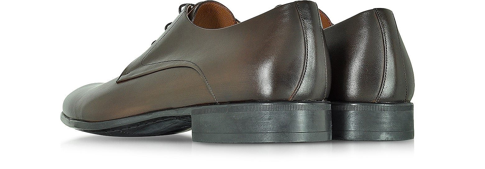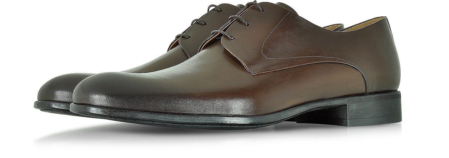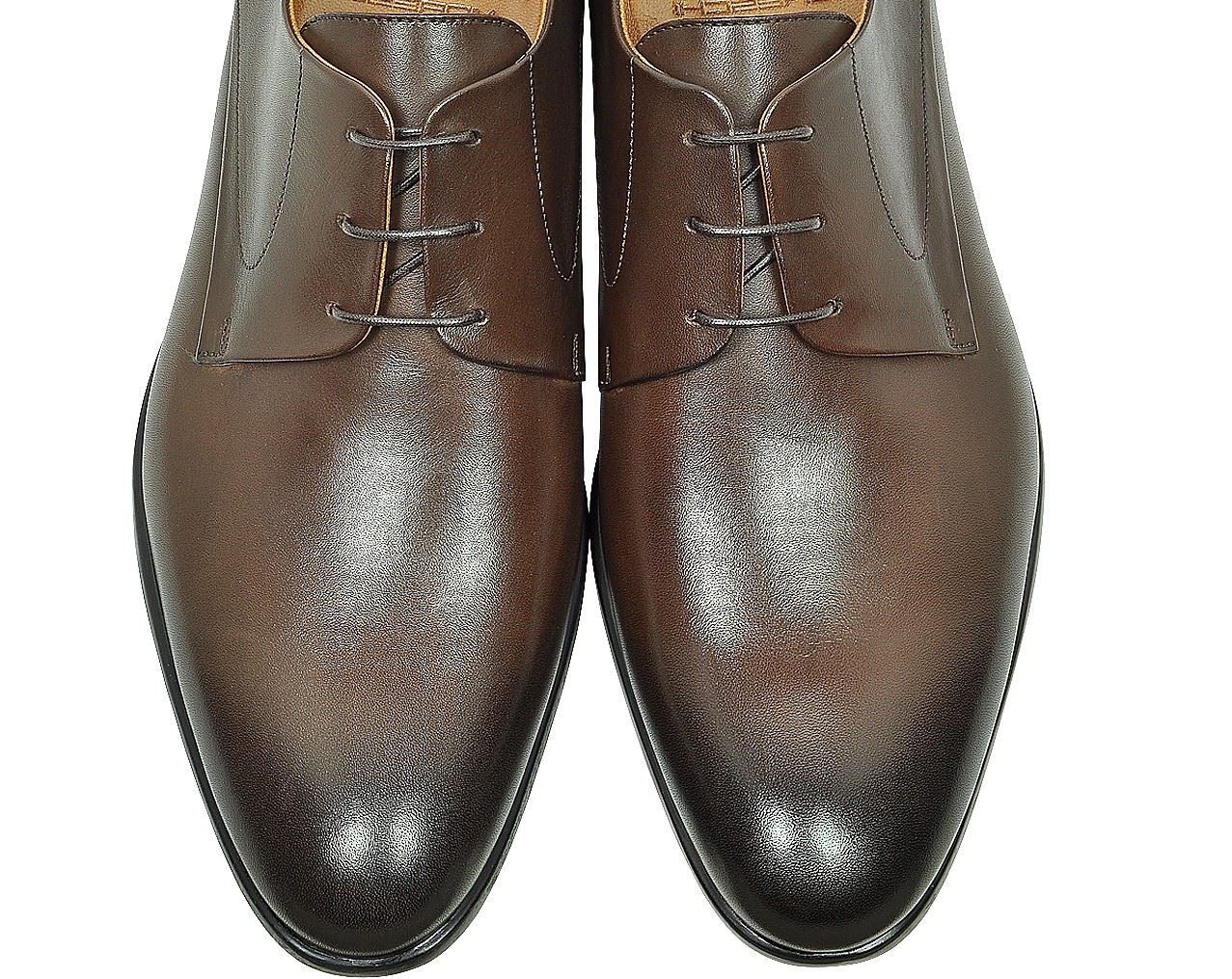 Classiche scarpe allacciate Derby in pelle di vitello marrone. Modello semplice e quotidiano. Realizzato con la tipica produzione Blake, presenta suola in gomma