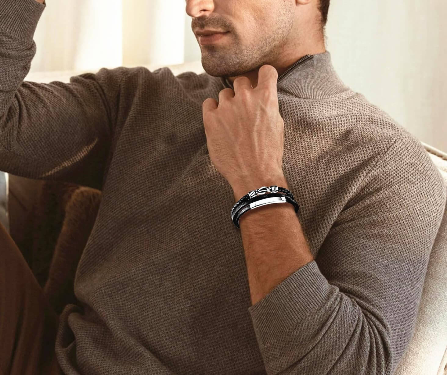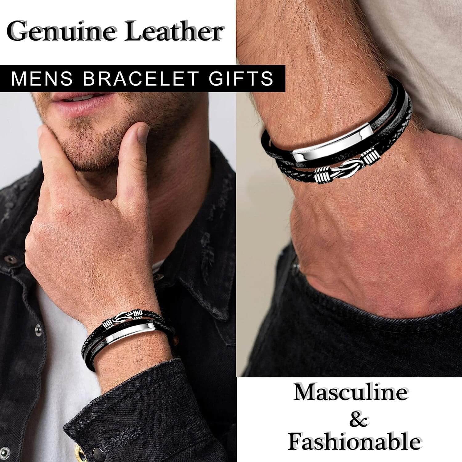Bracciale da uomo in pelle nera, in vera pelle intrecciata, con chiusura magnetica (cinturino in pelle con maglie extra)
