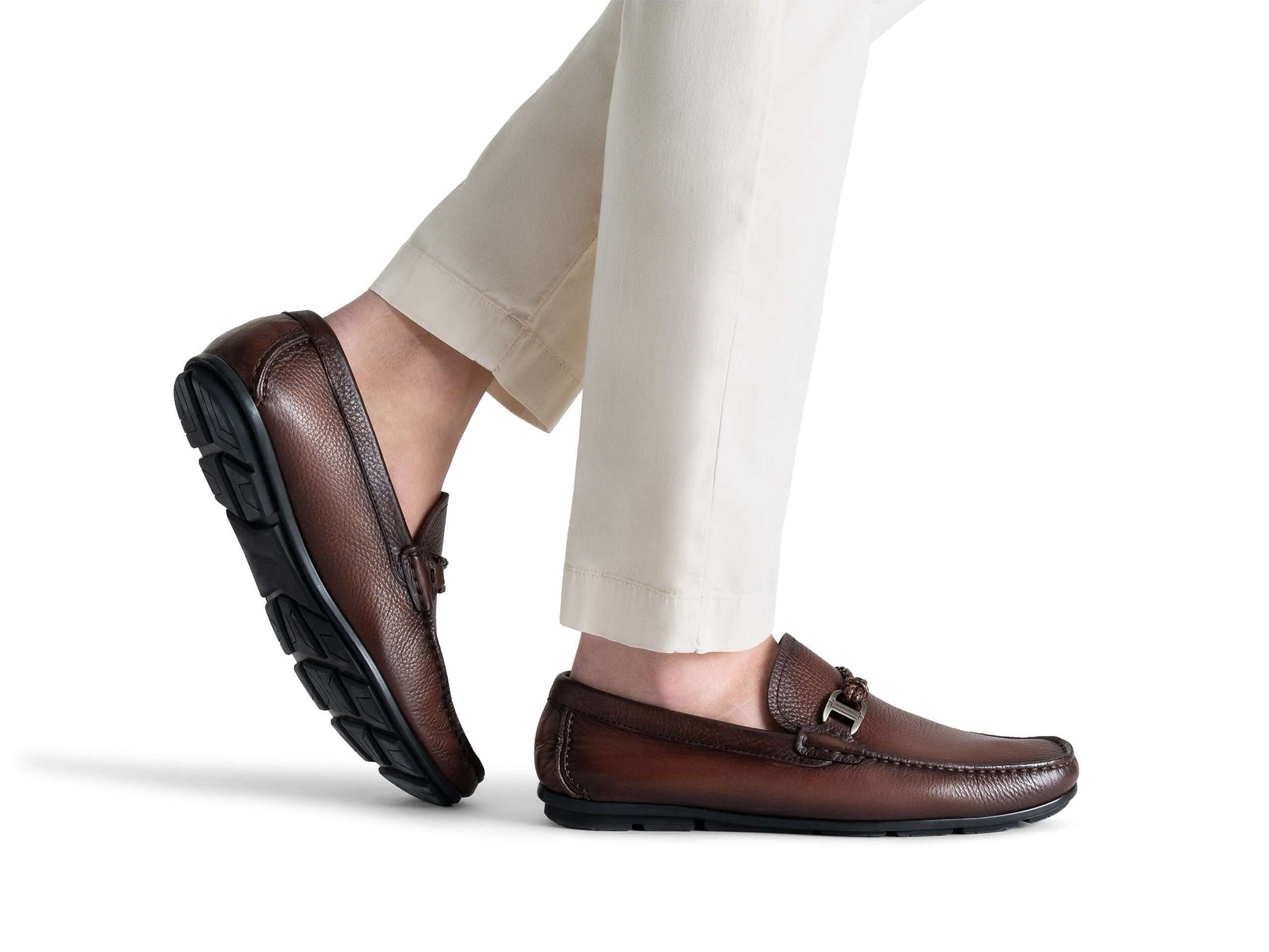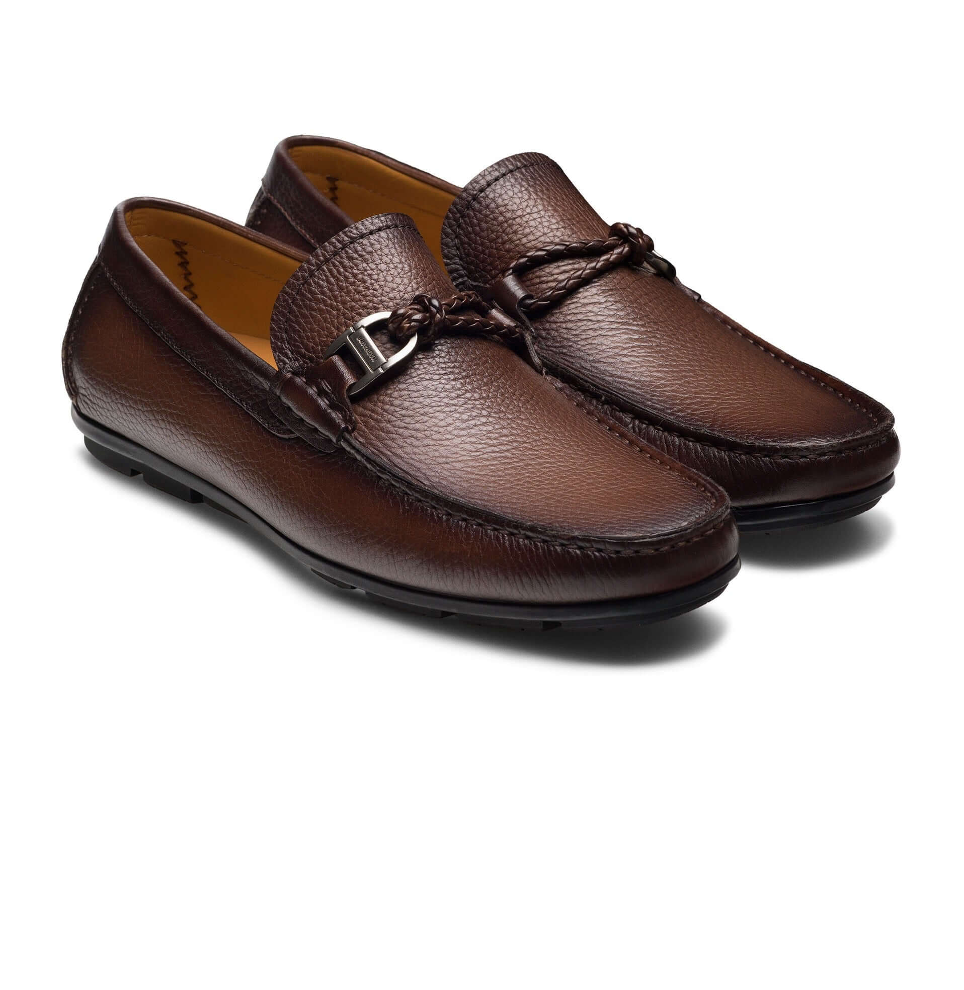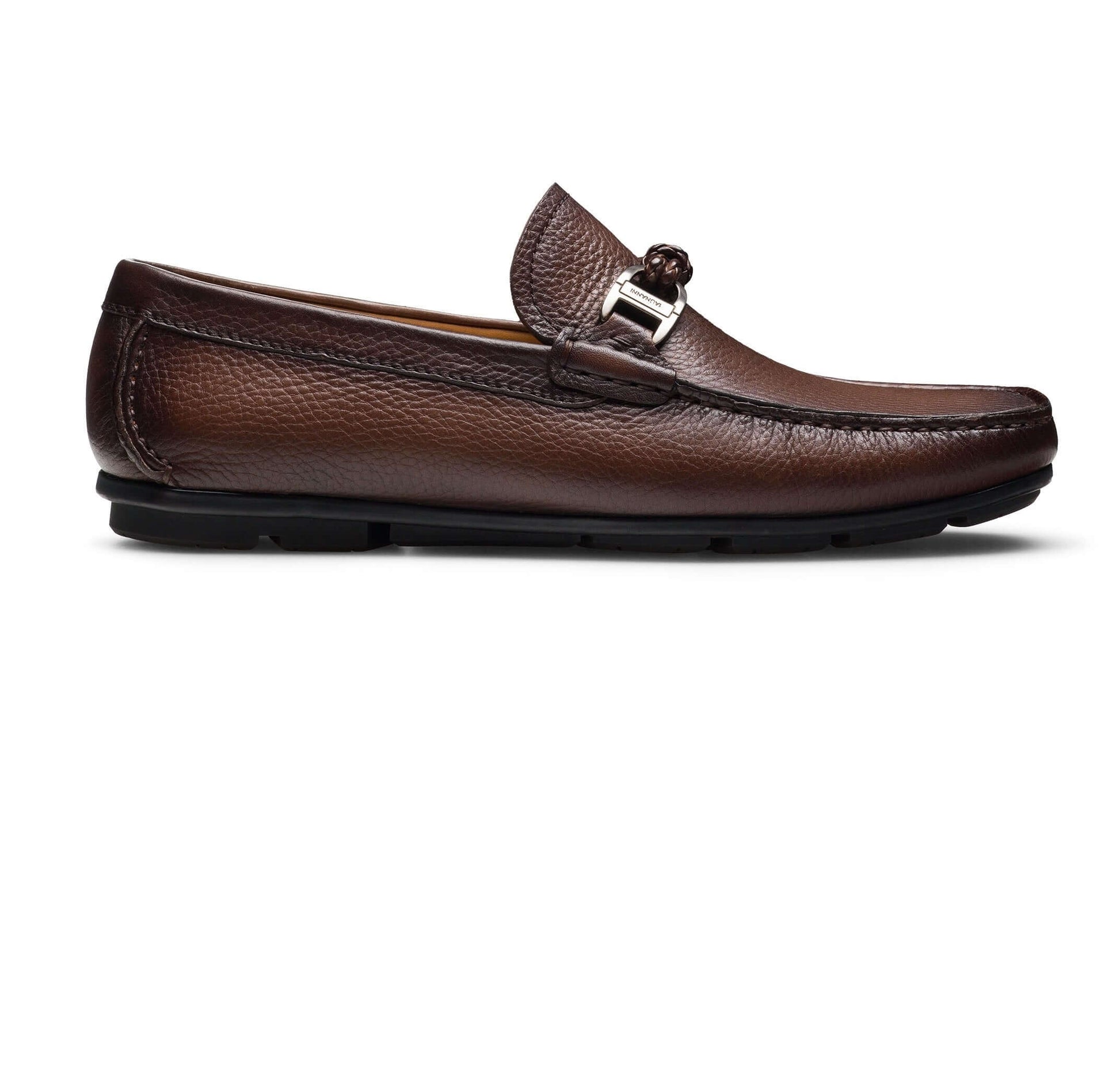 Questo design raffinato presenta un dettaglio in pelle intrecciata decorato con un accento metallico, completato da una punta a mocassino meticolosamente cucita a mano. Realizzato in morbidi pellami, questo mocassino slip-on presenta una suola in gomma a copertura totale per una maggiore durata. La sua lussuosa fodera in pelle e la soletta imbottita garantiscono un comfort eccezionale per tutto il giorno.