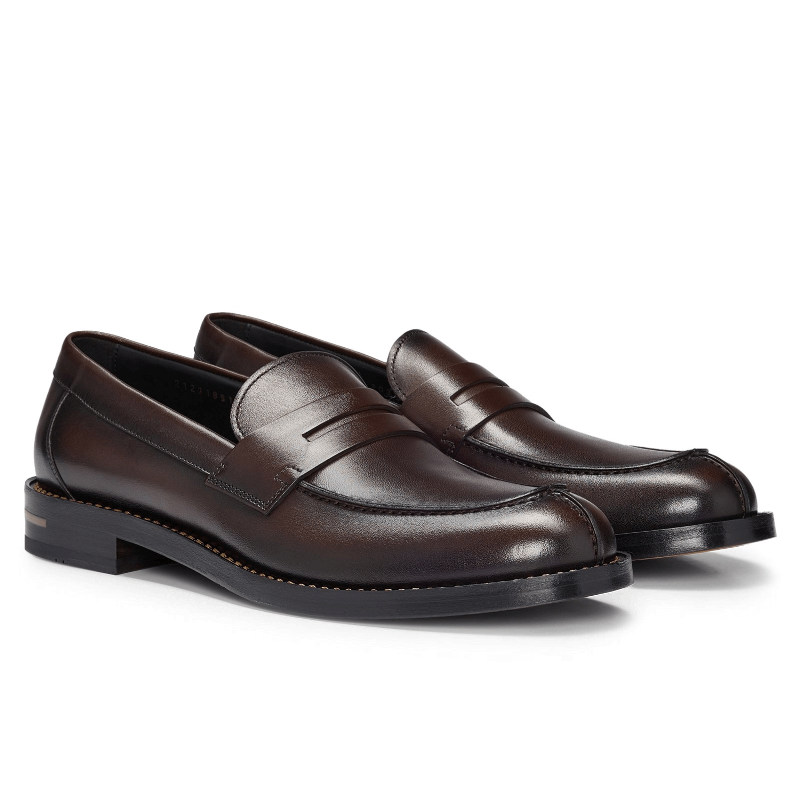 Esclusivi mocassini realizzati in Italia in pelle liscia con dettagli brandizzati e rifinitura penny.