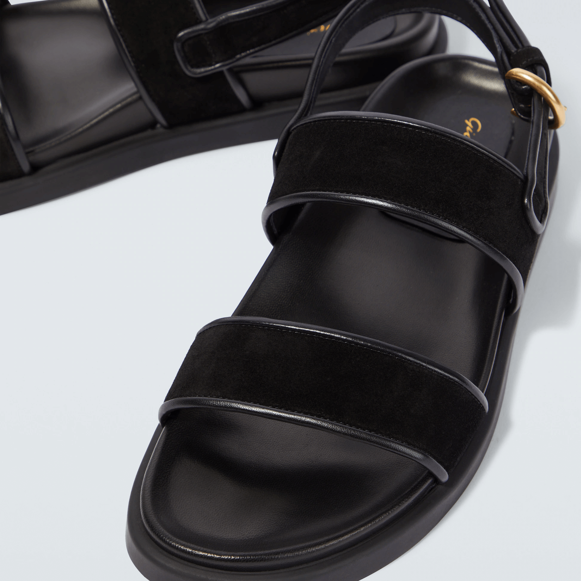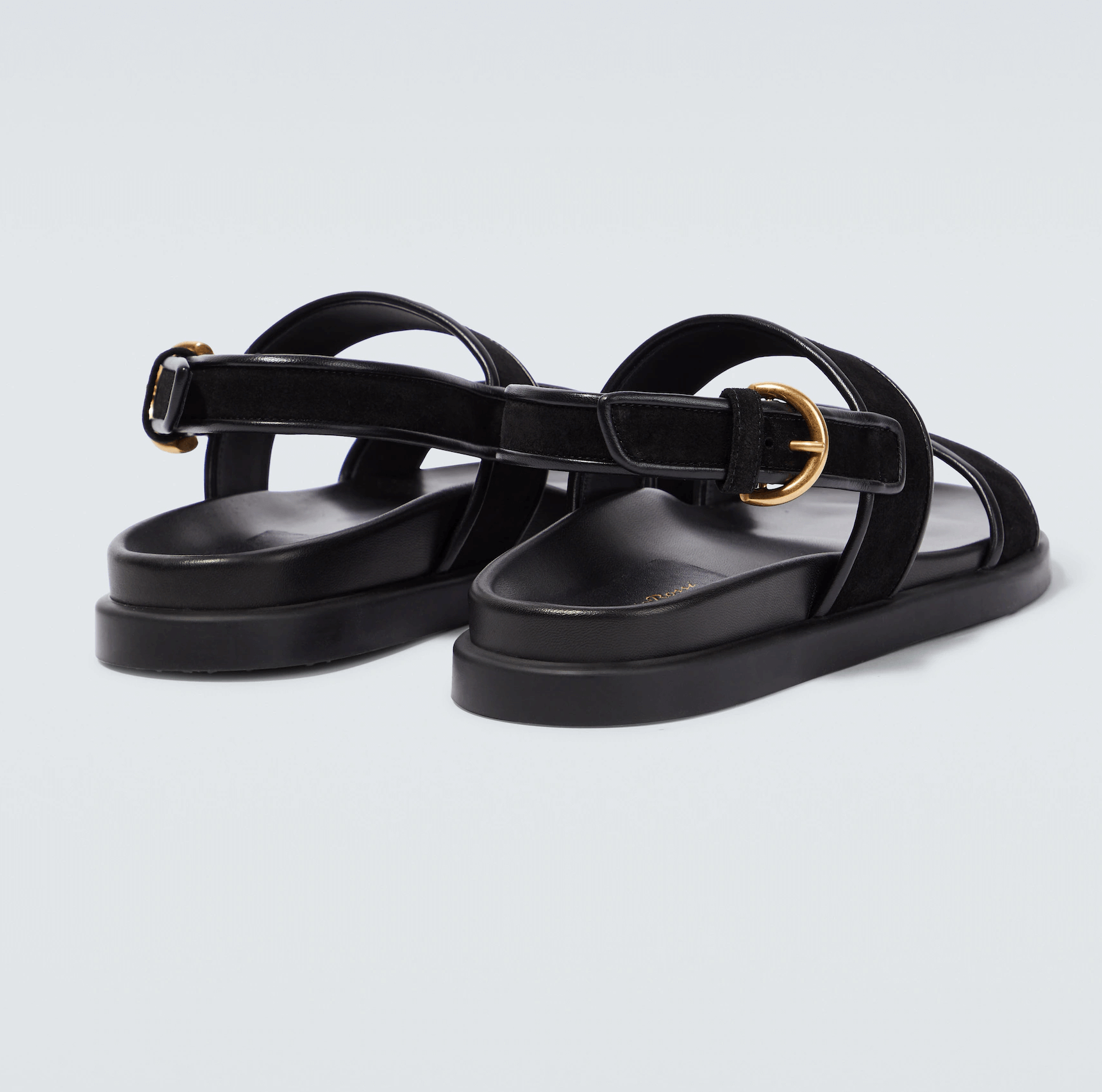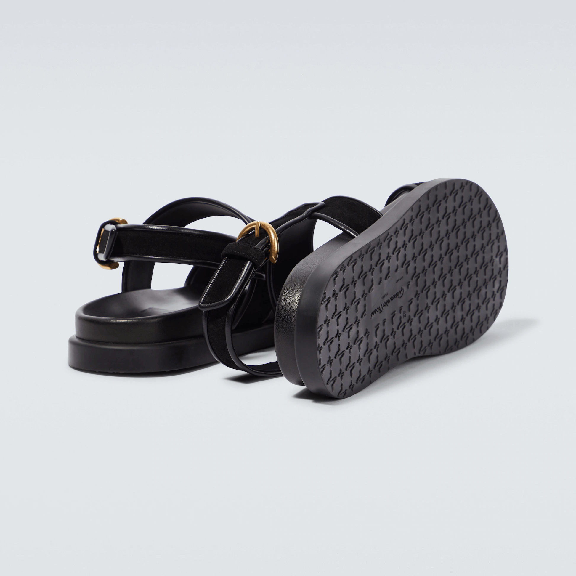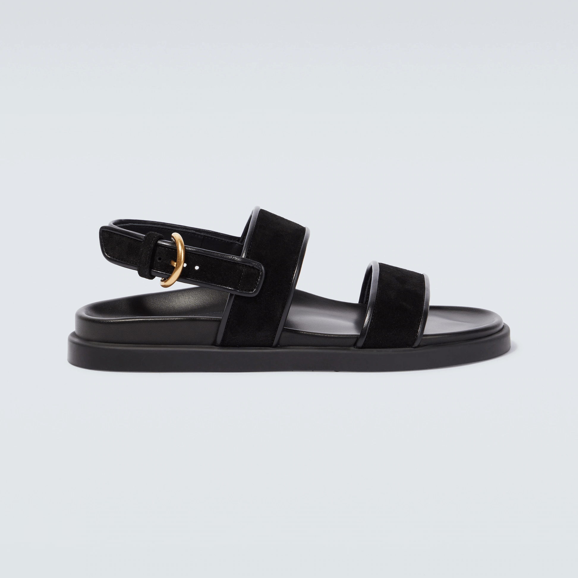 I sandali di Gianvito Rossi sono realizzati in suede con finiture in pelle ton-sur-ton e presentano una silhouette aperta in punta con fibbia alla caviglia e una suola in gomma.