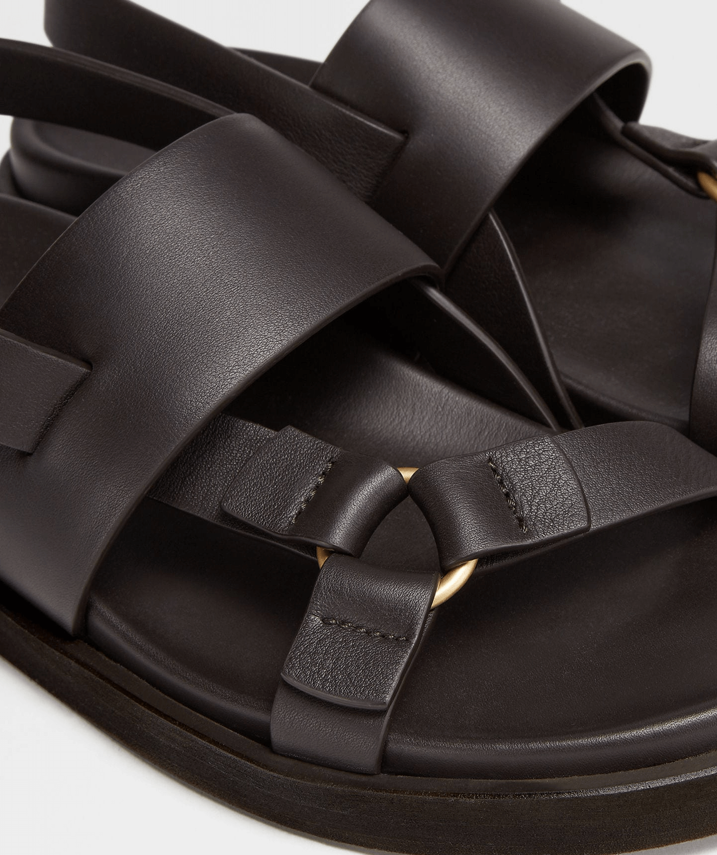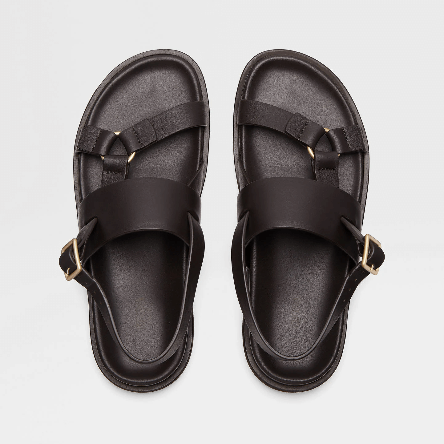 Calza i sandali Panarea molto raffinati in pelle marrone scuro e rilassati con stile. La morbida tomaia in pelle è completata da una suola in crepe di gomma che assicura la funzionalità anti-scivolo. Allaccia la fibbia in metallo con finitura in ottone e sarai pronto per uscire.