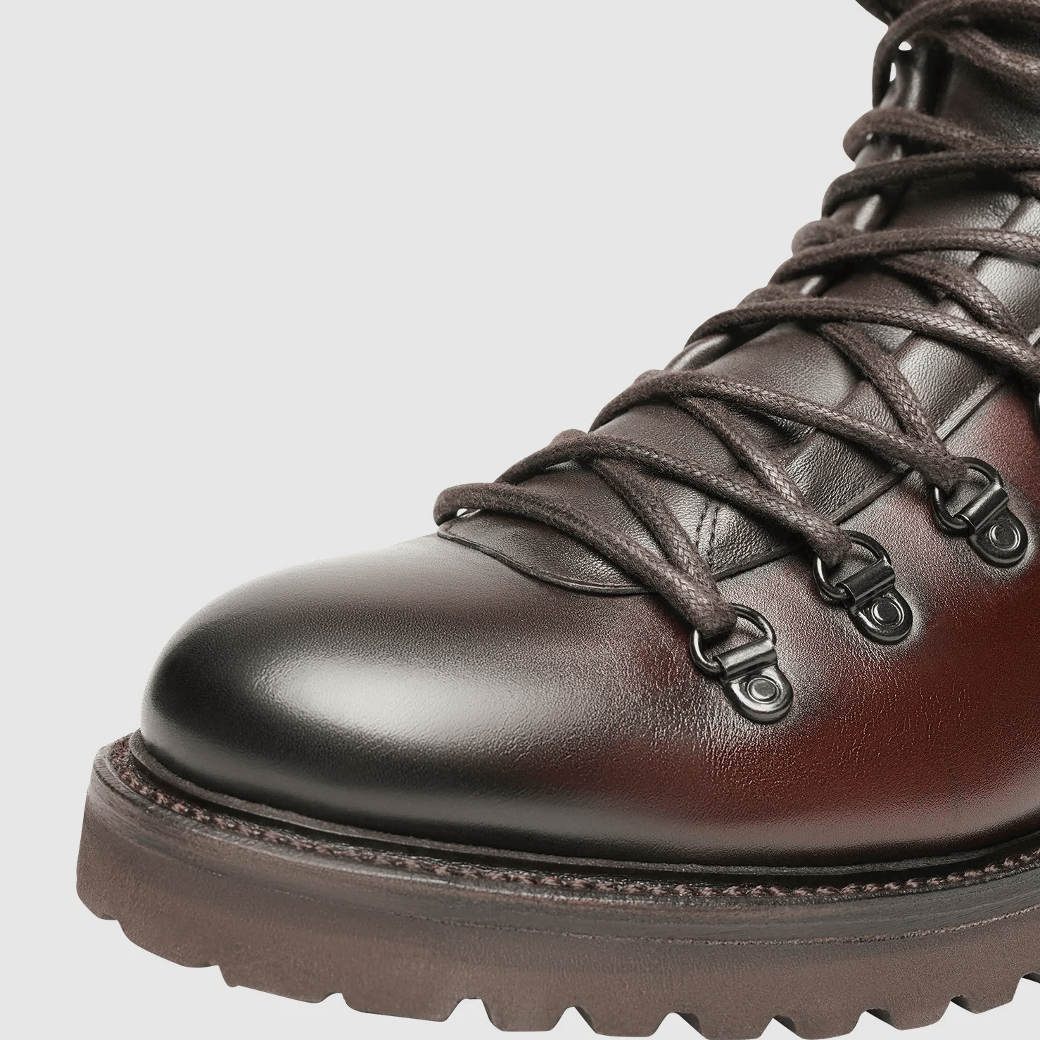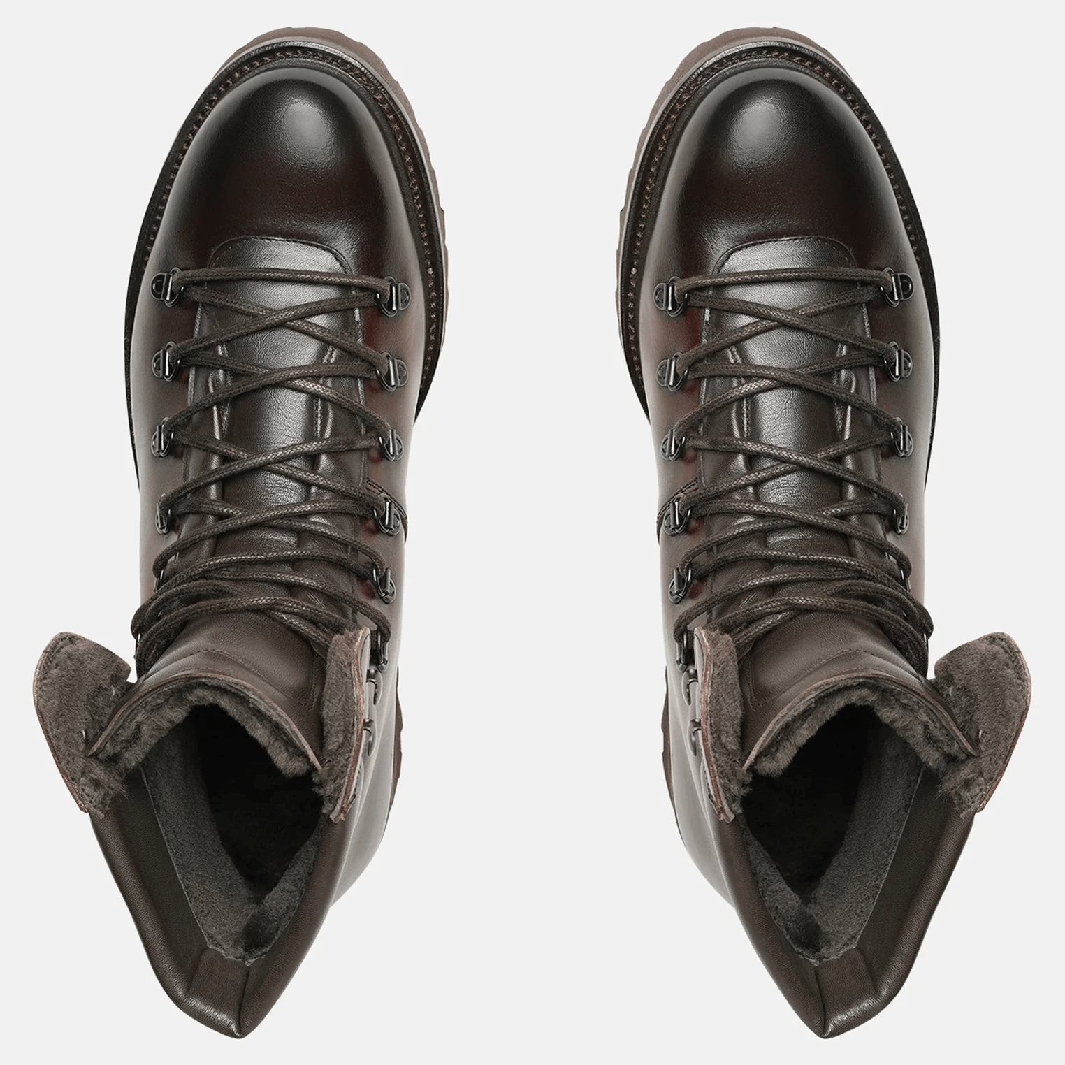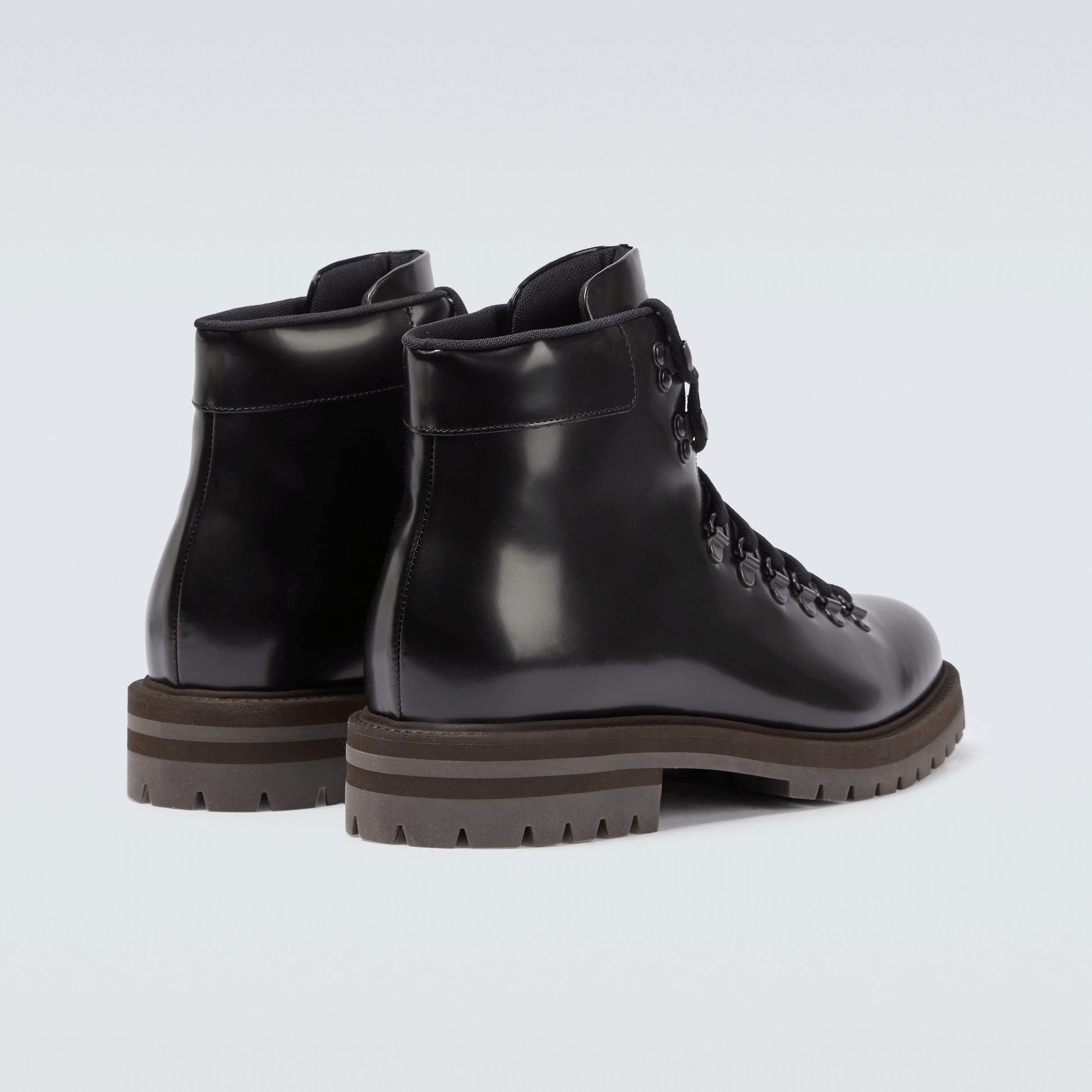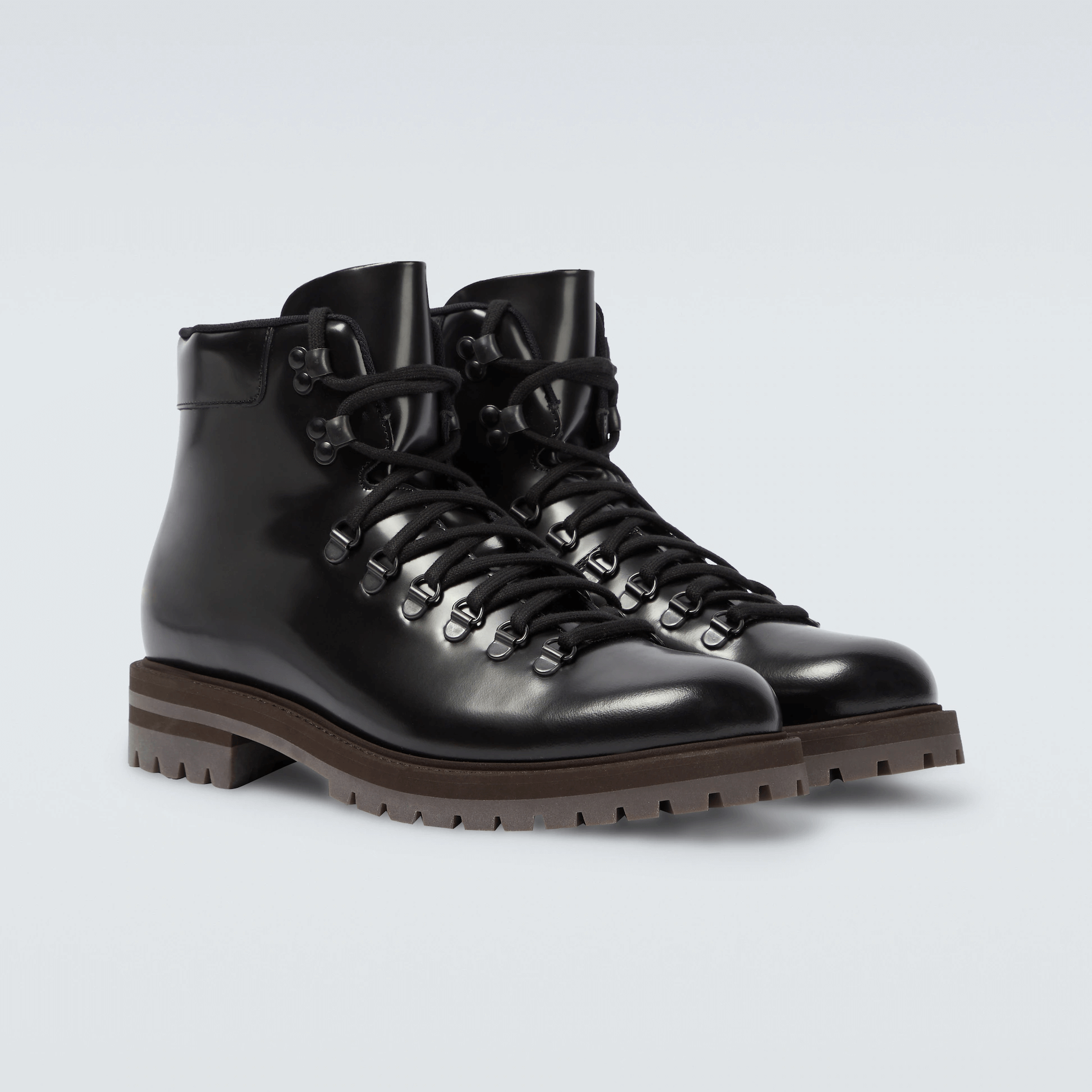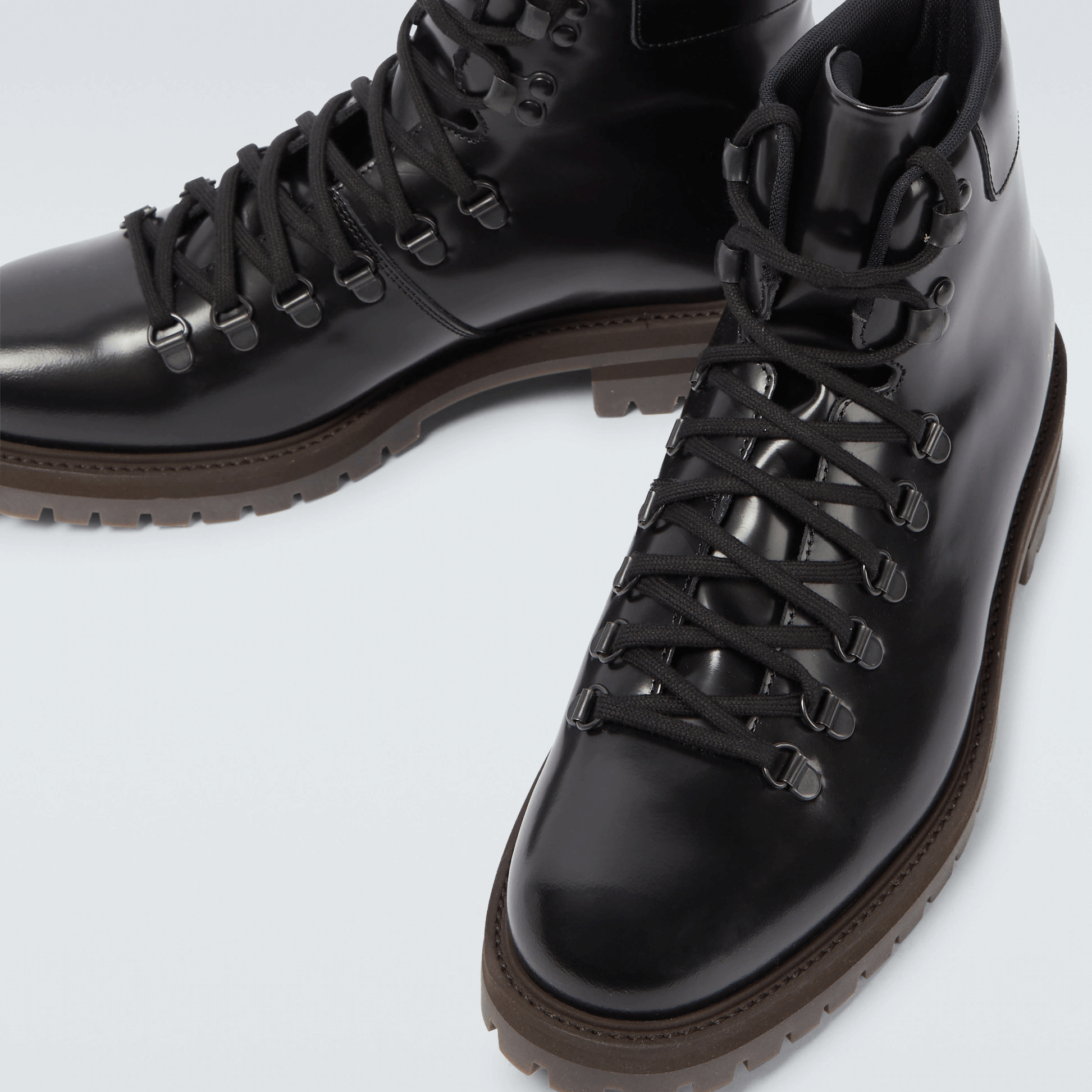 Ispirati ai classici scarponcini da trekking, questi stivali sono realizzati con una tomaia morbida in pelle e una suola dentellata. Disponibili interamente in nero o marrone presentano occhielli e lacci ton-sur-ton