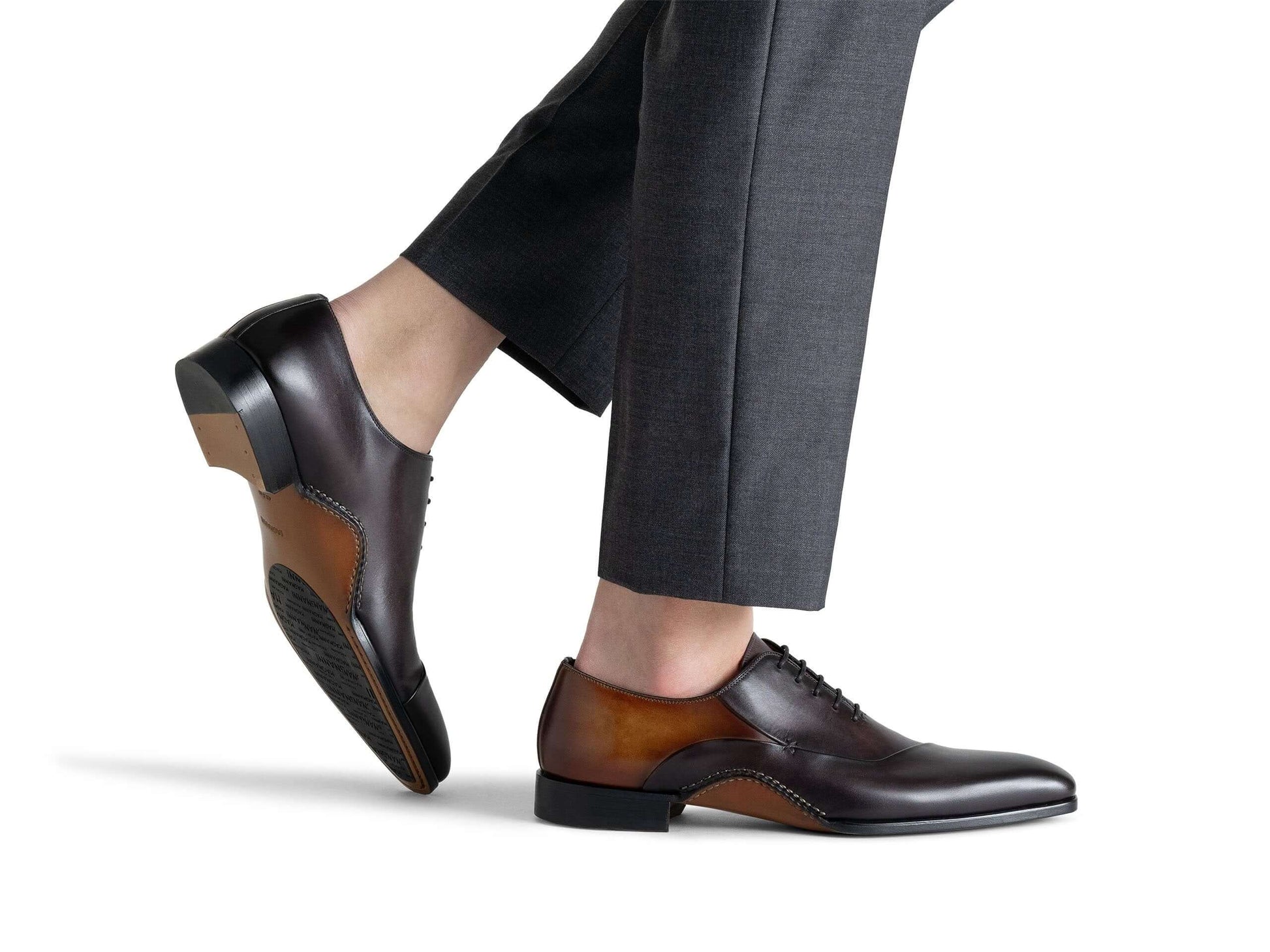 È un elegante Oxford dal design moderno. Il bordo piegato asimmetrico crea un tocco perfetto e sottile su un classico Oxford grigio. La parte posteriore della scarpa presenta un tacco con accenti cuero per una maggiore svasatura. È dotato della nostra famosa doppia suola Artesano, in cui la suola viene avvolta sulla tomaia sia sull'arco interno che su quello esterno e poi cucita a mano dai nostri maestri artigiani. La nostra caratteristica costruzione Bologna avvolge il piede in pelle creando un plantare ammortizzato e una flessibilità senza pari.