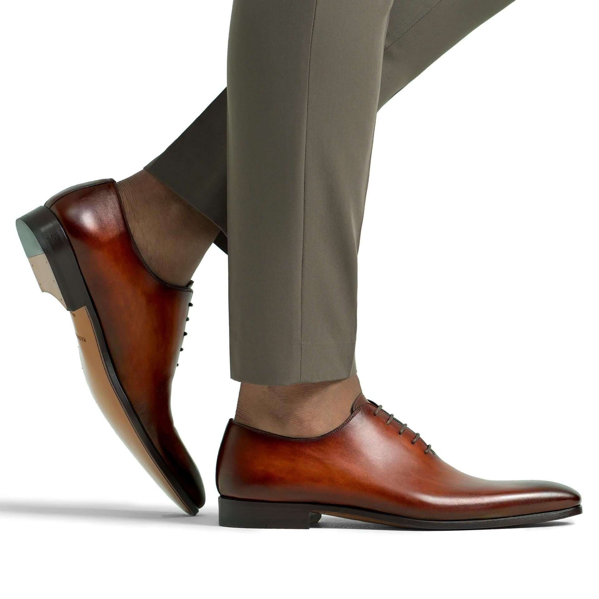Questo modello è una classica Oxford a taglio intero. Ricavato da un unico pezzo di pelle, presenta una punta moderna e leggermente allungata per creare una silhouette slanciata ed elegante. Questo design senza tempo offre versatilità per essere indossato in ogni occasione.