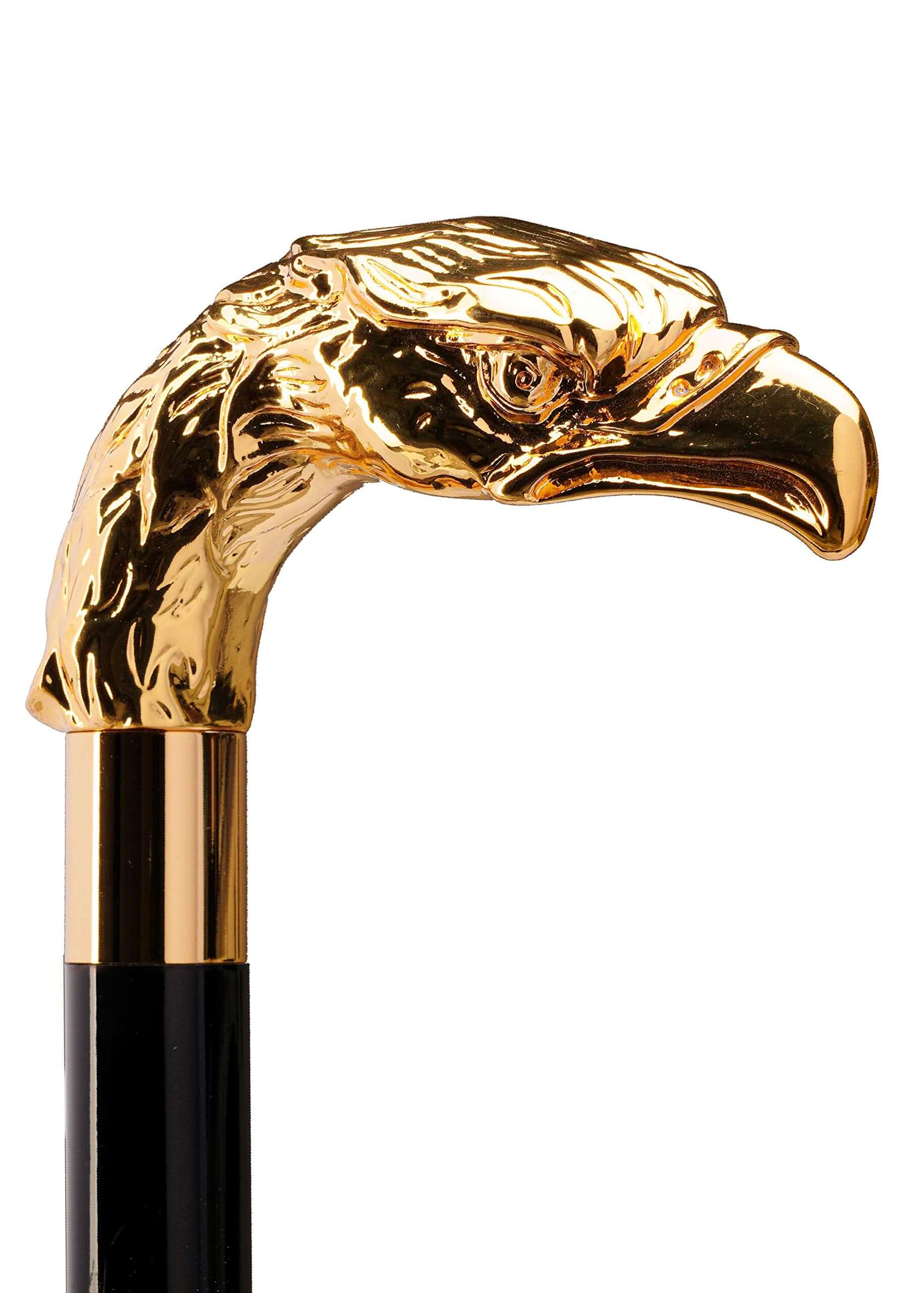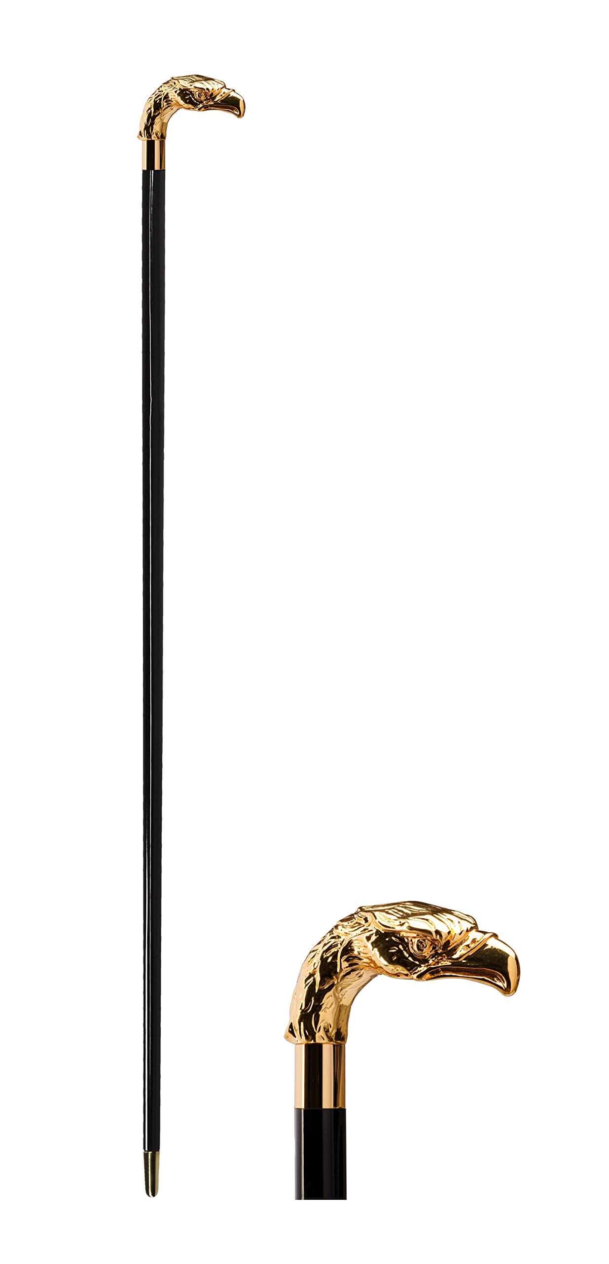 - Bastone passeggio uomo, con impugnatura in polvere di marmo placcato oro 18k, british country e dandy, modello stile testa aquila, vedi foto.